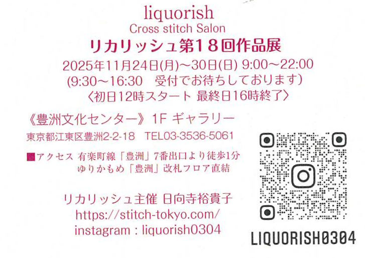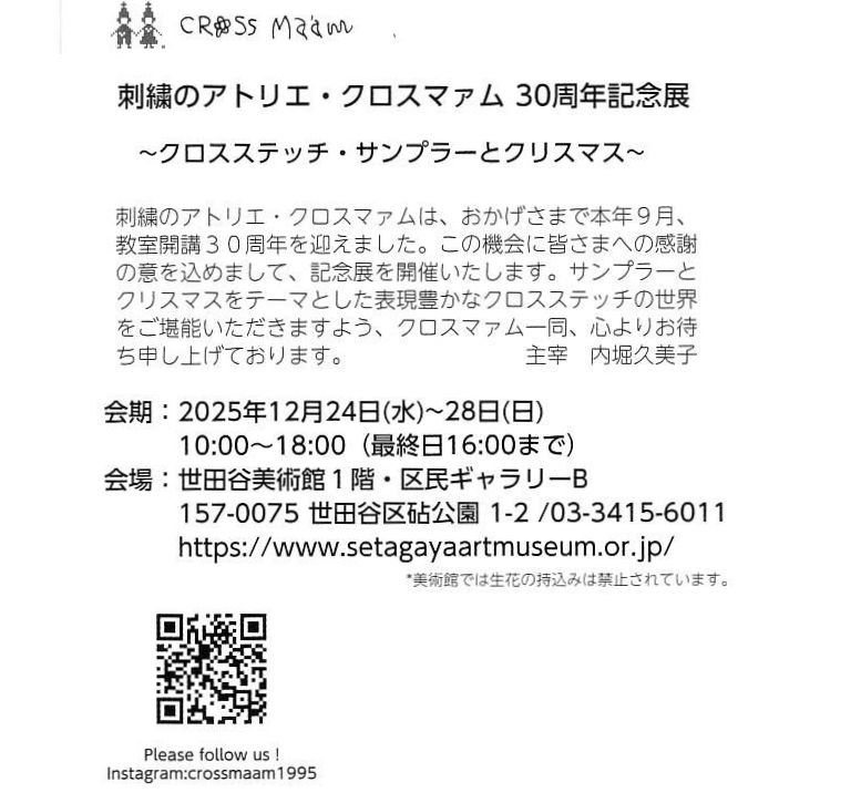 刺繍のアトリエ・クロスマァム 30周年記念展 〜クロスステッチ・サンプラーとクリスマス〜