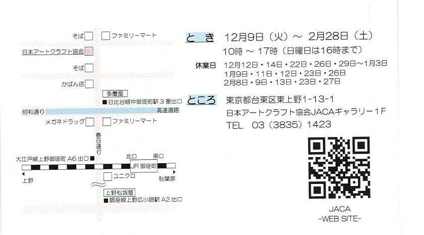 御徒町 日本アートクラフト協会JACAギャラリー1F 会期 12月9日〜2026年2月28日