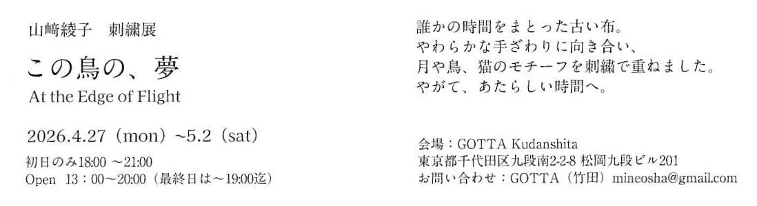 九段 GOTTA Kudanshita 会期 4月27日〜5月2日