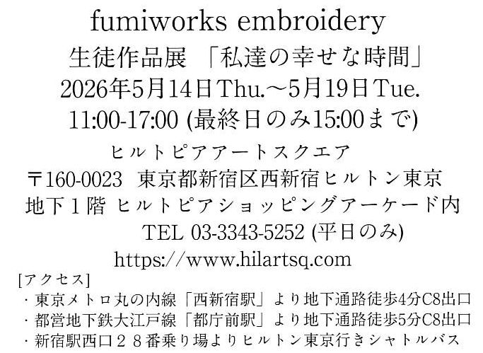 fumiworks embroidery 生徒作品展 「私達の幸せな時間」