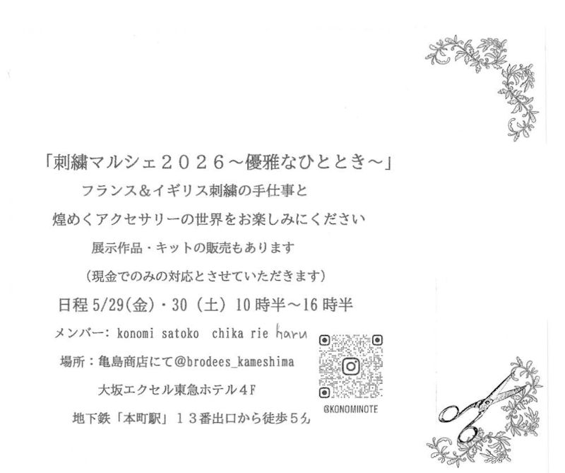「刺繍マルシェ2026〜優雅なひととき〜」